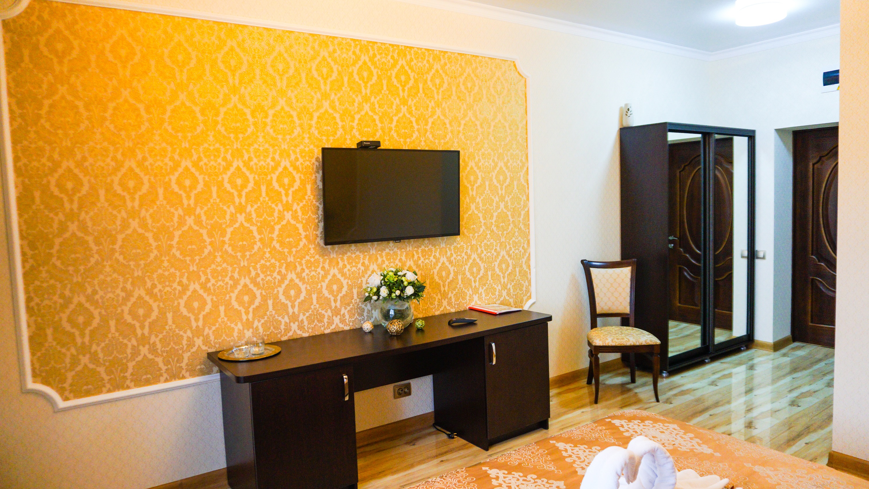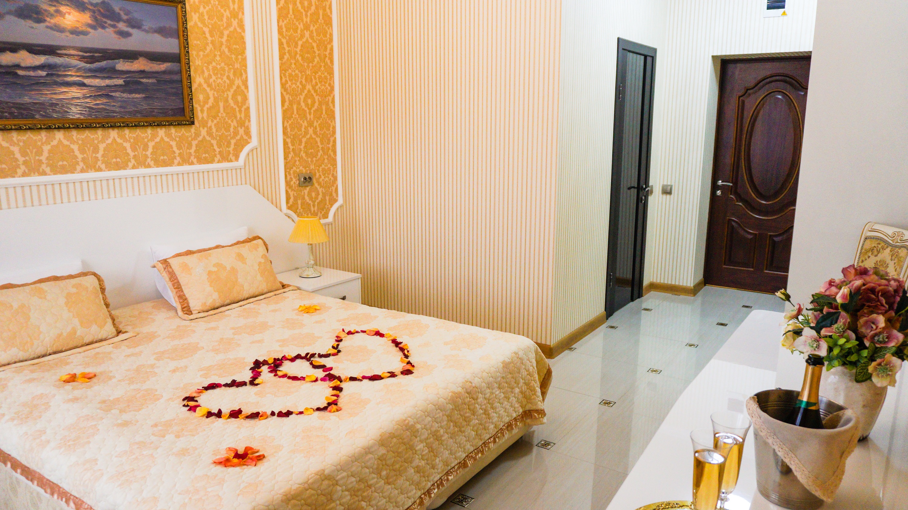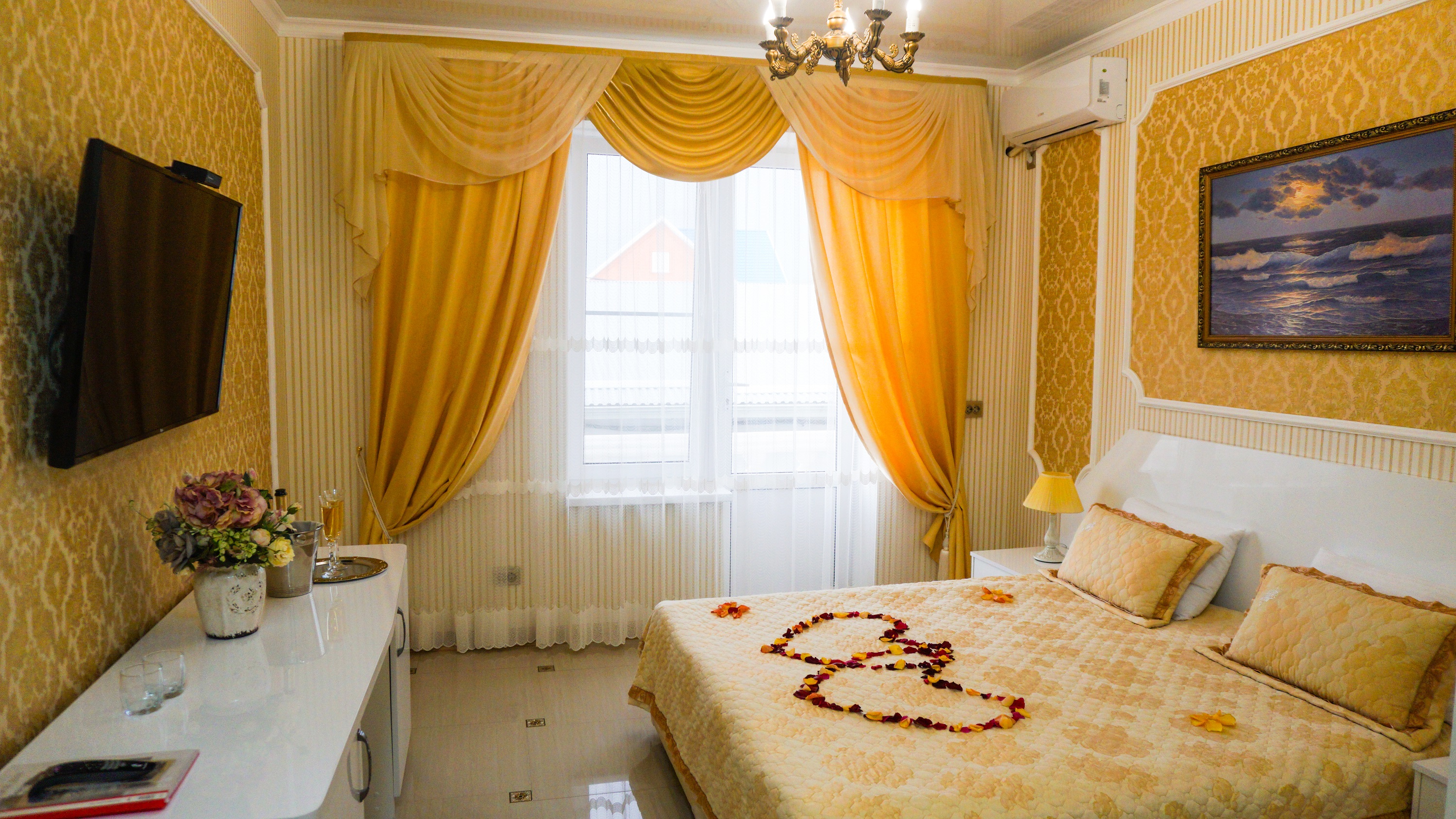 В номерах: 2 односпальные кровати (или 1 большая двуспальная), современная мягкая мебель, зеркала, комфортабельные санузлы с одноразовыми принадлежностями, фенами и ванной, халаты и качественные текстильные изделия, тёплый пол и климатические системы, кабельное телевидение, ЖК телевизоры, интернет WiFi.