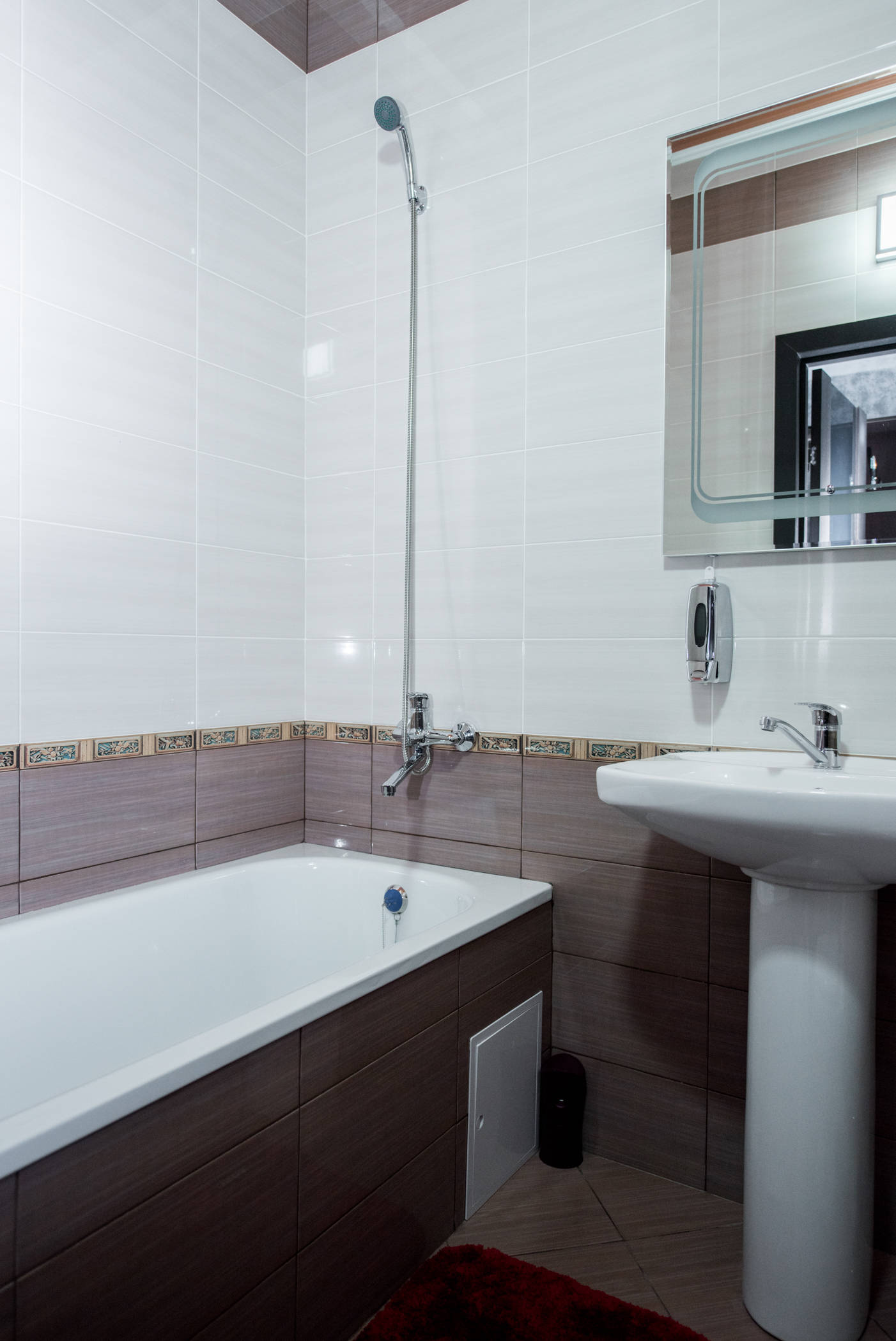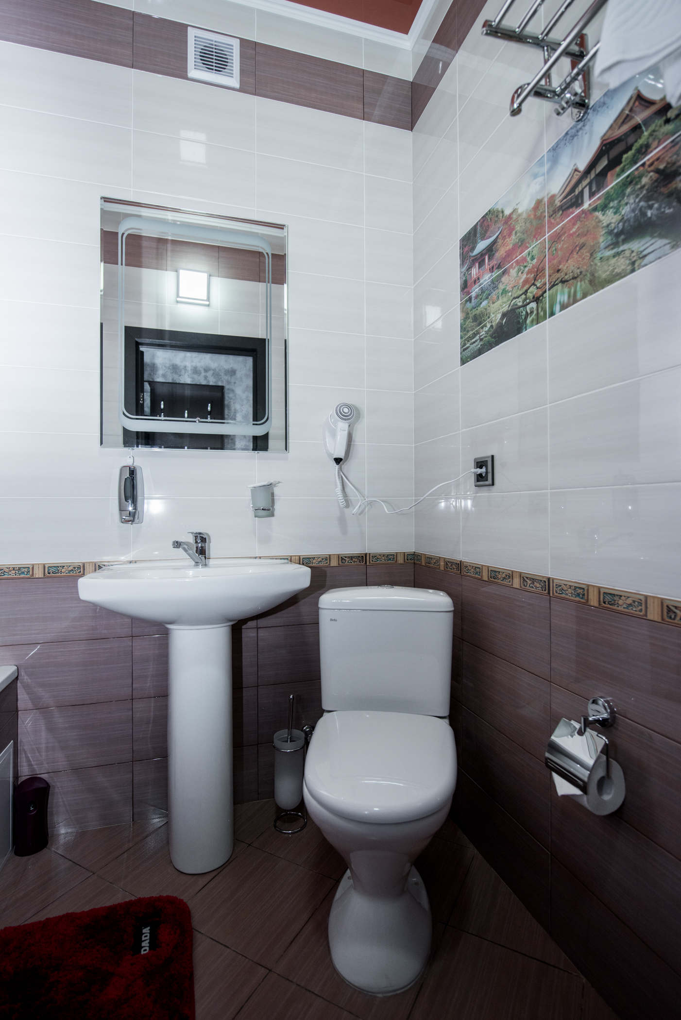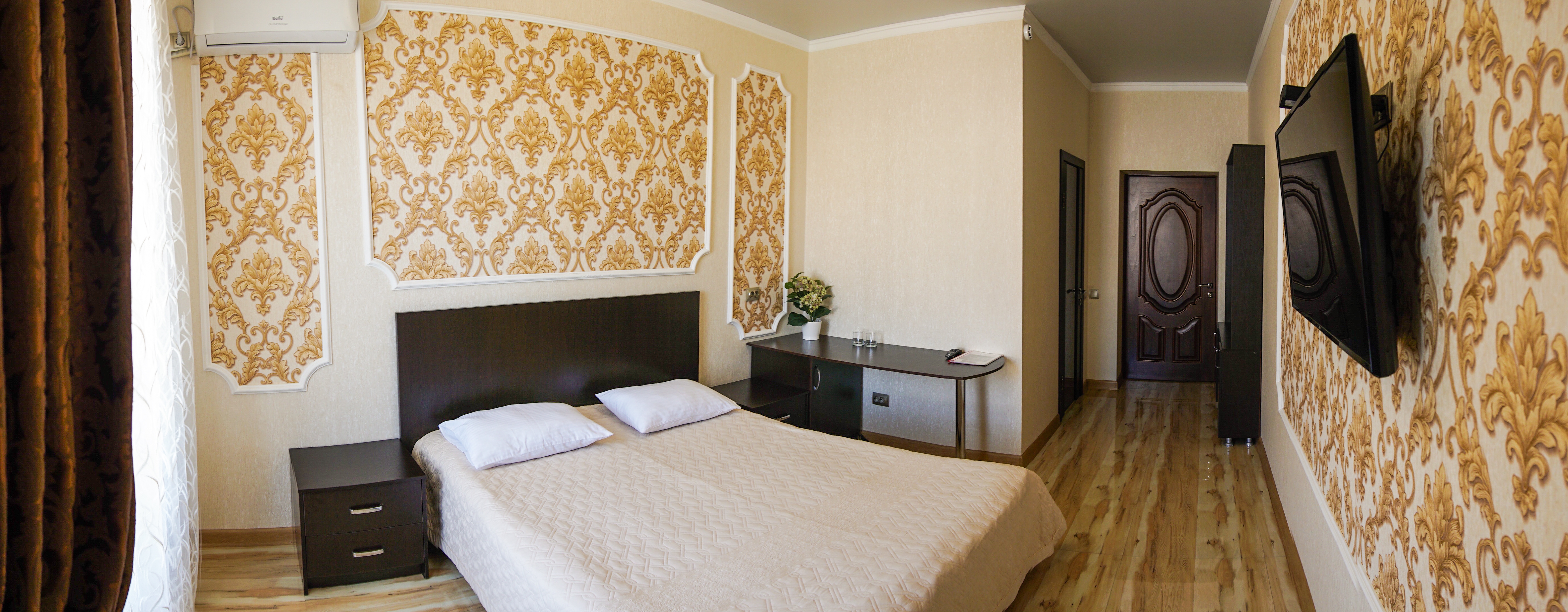 В номерах: 2 односпальные кровати (или 1 большая двуспальная), современная мягкая мебель, зеркала, комфортабельные санузлы с одноразовыми принадлежностями, фенами и ванной, халаты и качественные текстильные изделия, тёплый пол и климатические системы, кабельное телевидение, ЖК телевизоры, интернет WiFi.Номер 13. Категория Полулюкс. Цена: 2500 рублей за сутки.