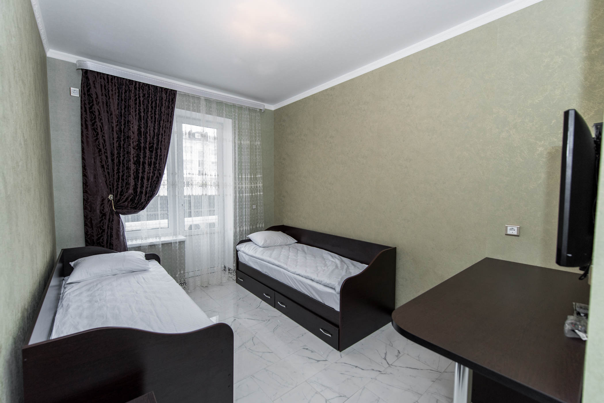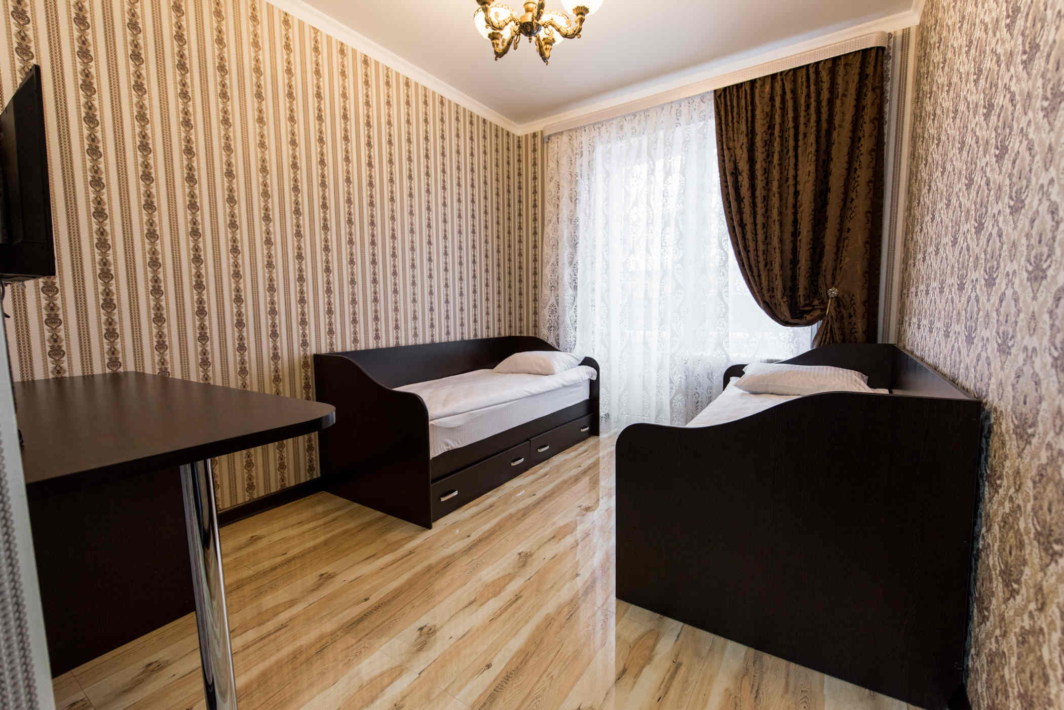 В номерах: 2 односпальные кровати (или 1 большая двуспальная), современная мягкая мебель, зеркала, комфортабельные санузлы с одноразовыми принадлежностями, фенами и ванной, халаты и качественные текстильные изделия, тёплый пол и климатические системы, кабельное телевидение, ЖК телевизоры, интернет WiFi.Номер 3. Категория Стандарт. Цена: 2000 рублей за сутки.